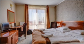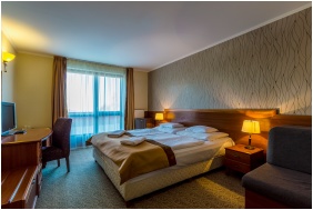A hotel 41 kétágyas, két akadálymentesített szobával, hat apartmannal és két lakosztállyal - 112 alap férőhellyel - várja a látogatókat. A kétágyas szobái közül nyolc összenyitható áll a vendégek rendelkezésére. A szobák mindegyike televízióval, telefonnal, minibárral, szobaszéffel, hajszárítóval és vezetékes internet csatlakozási lehetőséggel garantálja a megfelelő elhelyezést mind a családdal érkező, mind a konferenciákon résztvevő vendégek számára. A szobák többsége zuhanykabinos és pótágyazható. Kijelölt szobák állnak a kisállattal érkező vendégek rendelkezésére. A kis családos apartmanok egy nappalit, egy kétágyas szobát, fürdőszobát, előszobát foglalnak magukba, melyek maximum négy fő elhelyezésére alkalmasak. A nagy családos apartmanokban egy nappali, két kétágyas szoba, fürdőszoba, előszoba található, mely maximum hat fő részére biztosít kényelmes elhelyezést.